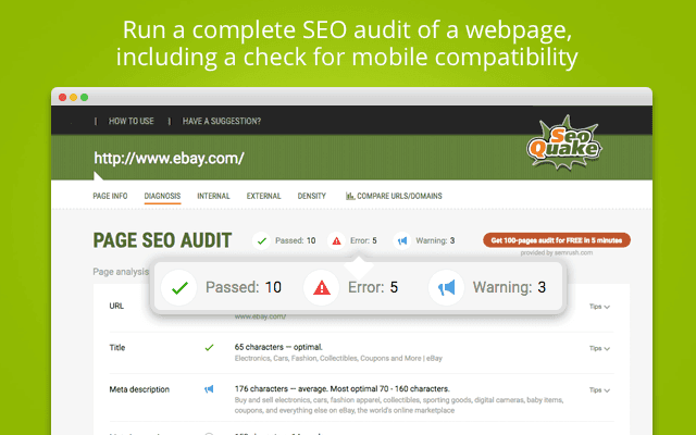 SEOquake is a multi-talented tool that offers insights into on-page elements like meta tags and internal links.